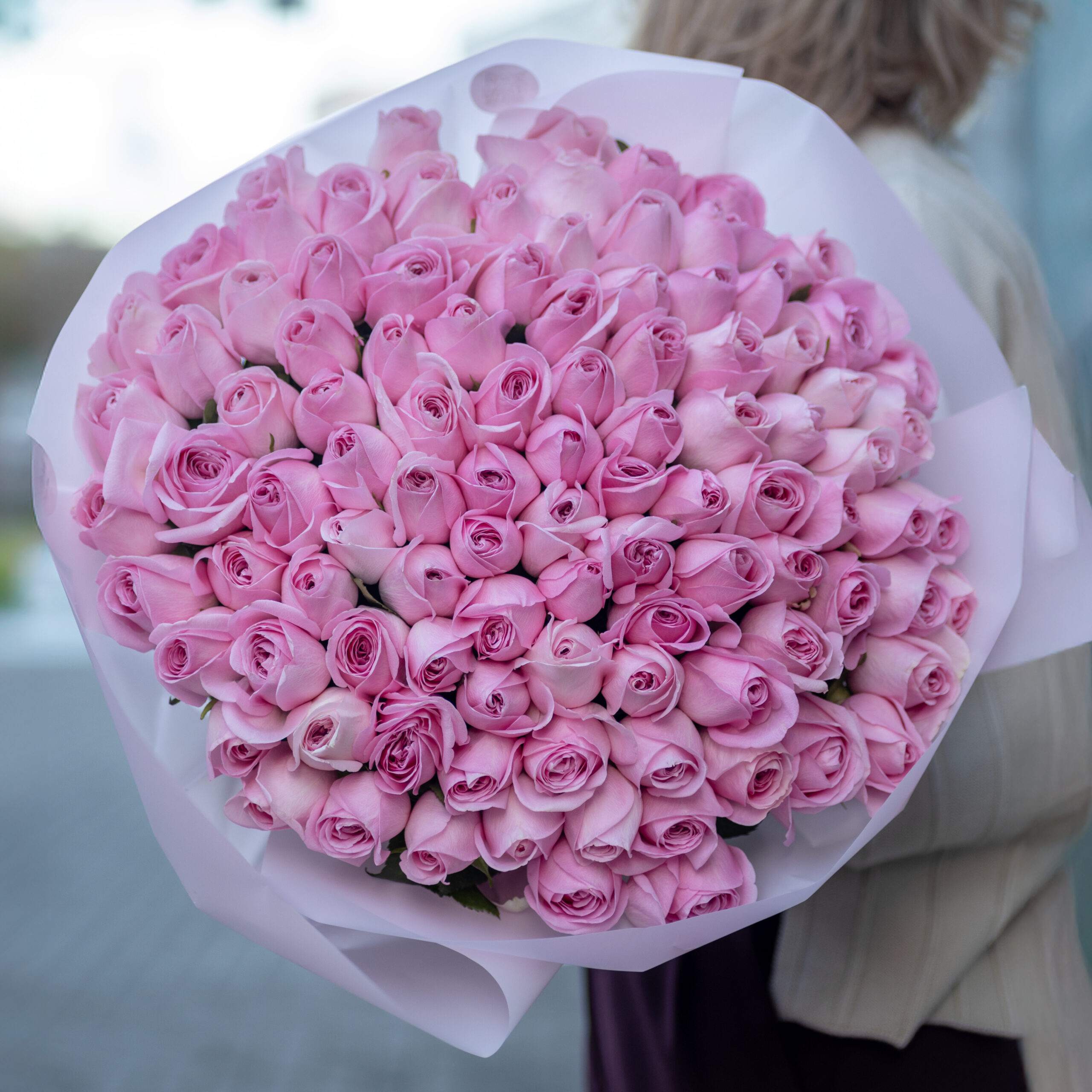 Букет 101 розовая роза 35–50 см (Кения) — пышный и элегантный букет из свежих кенийских роз с нежным розовым оттенком. Ровные стебли, аккуратные бутоны и хорошая стойкость. Идеален для дня рождения, признания или особого повода. Бесплатная доставка по Таллинну.