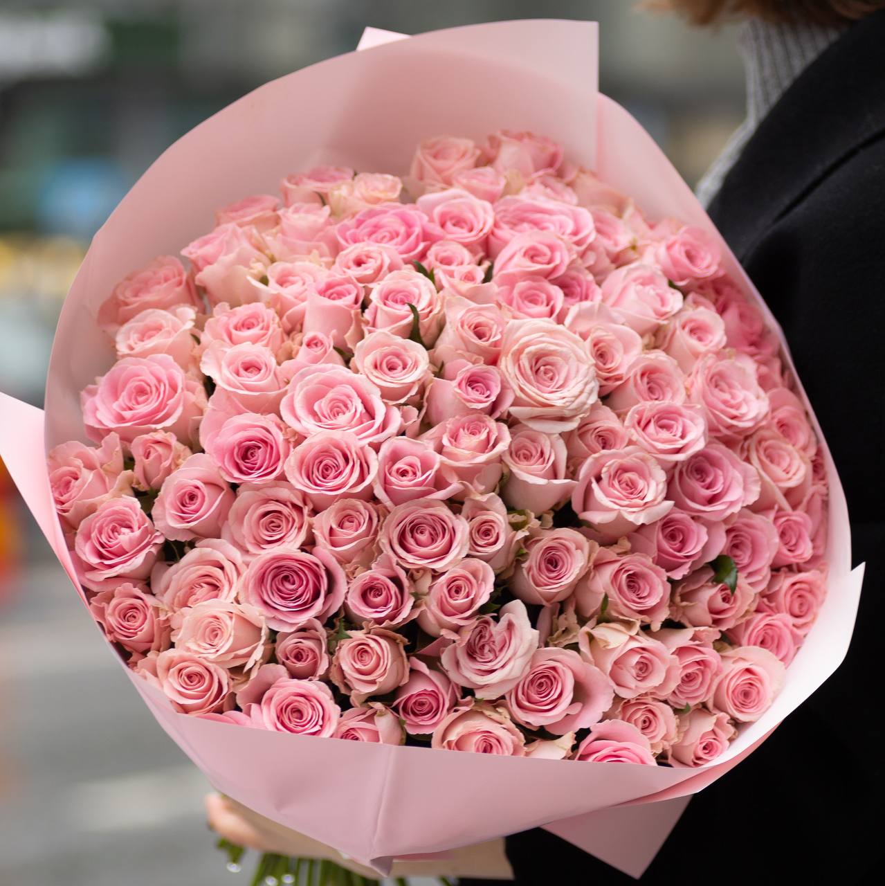 Шикарный классический букет из 101 свежей розы, высота 35-50 см. К каждому букету прикладываем открытку в подарок и средство, продлевающее жизнь розам. Рекомендуемое количество пакетиков для продления жизни букета — 7 штук