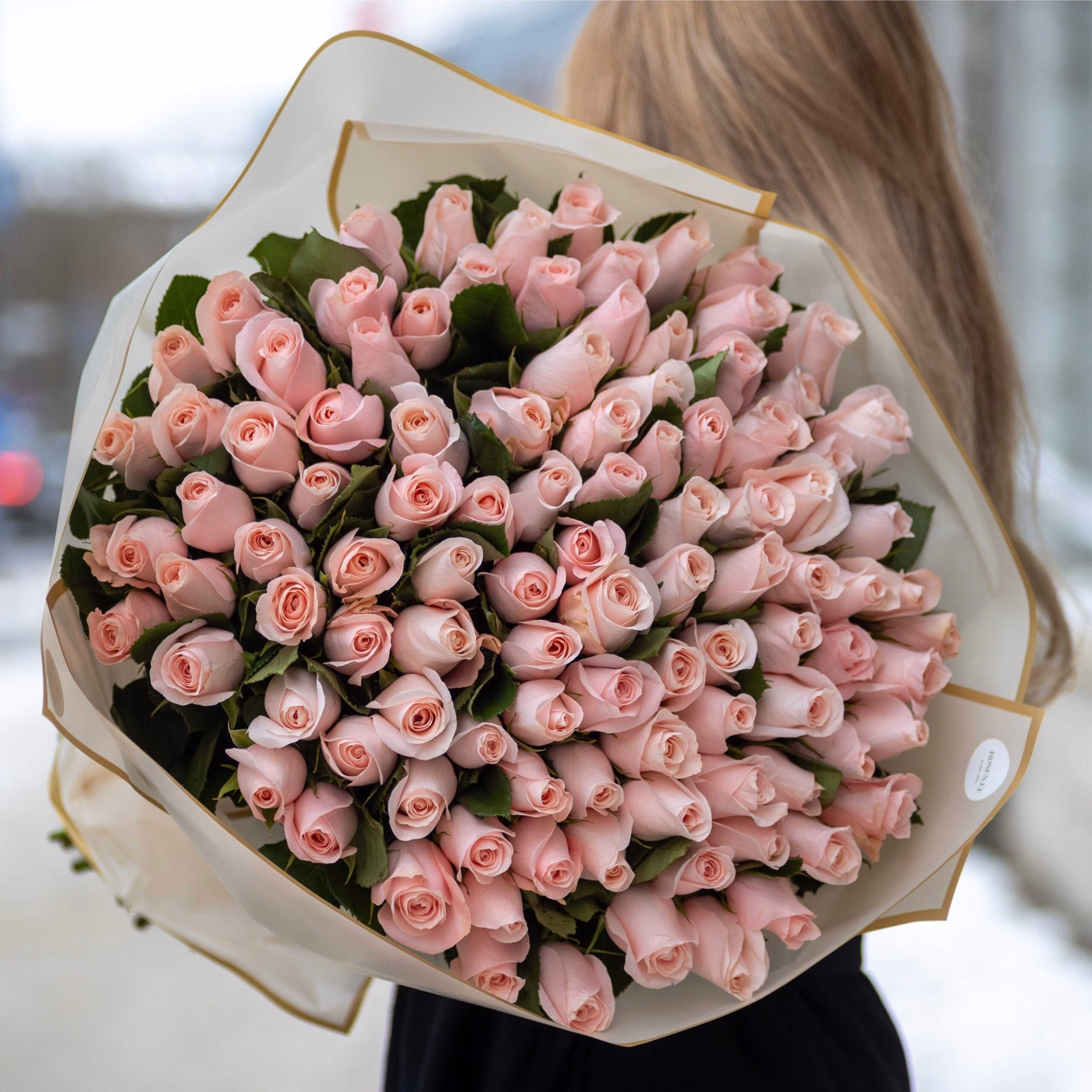 Элегантный букет из 51 нежно-розовой розы Pomarosa с длиной стебля 70 см. Крупные бутоны и аккуратное оформление делают его эффектным подарком.