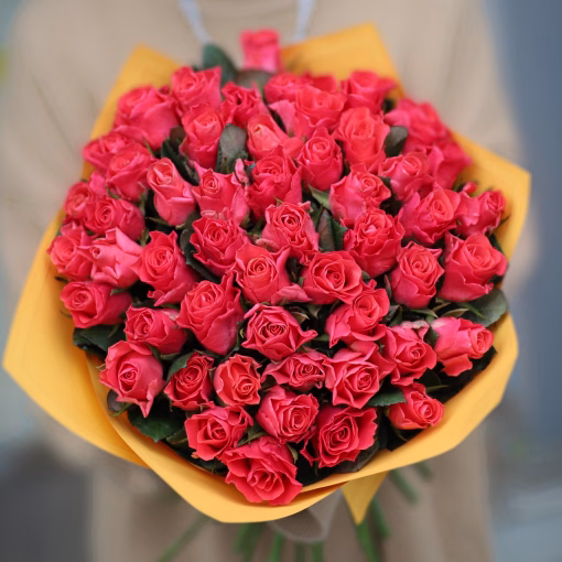 Шикарный классический букет из 51 свежей  розы, высота 35-50 см. К каждому букету прикладываем открытку в подарок и средство, продлевающее жизнь розам. Рекомендуемое количество пакетиков для продления жизни букета — 4 штуки