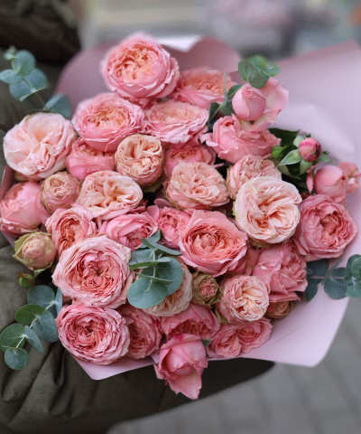 Букет собирается из доступных на момент заказа цветов разных оттенков.