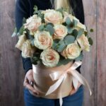 В цветочную композицию, подаренную в корзине или коробке, подливайте воду по мере высыхания флористической губки в трех-четырех местах каждые 1-2 дня.