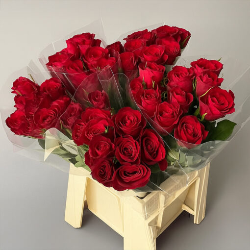 Роза Мадам Ред 40–50 см. Классическая красная роза насыщенного оттенка. Продаётся только упаковками, в одной упаковке 10 роз.