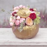 Осенняя композиция в тыкве с сезонными цветами (цветовая гамма может отличаться от представленной на фото).
