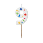 Свеча-цифра ‘9’, белое конфетти, 5,5 см