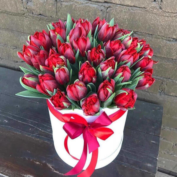 Букет из 41 тюльпанов в стильной упаковке. К каждому нашему букеты мы прикладываем открытку